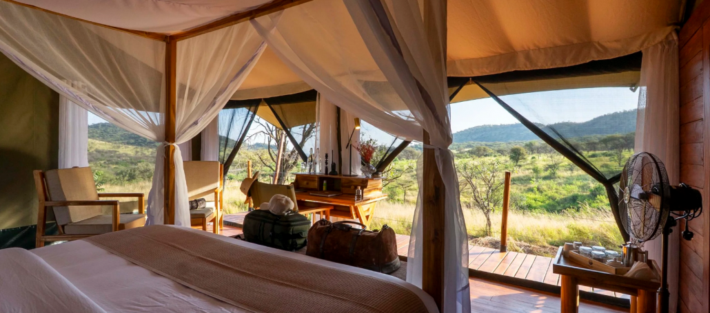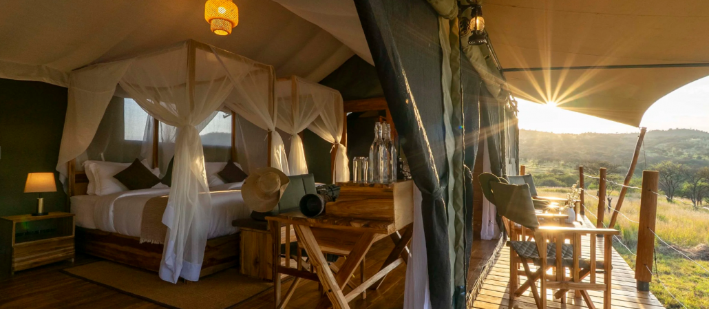 位於賽倫蓋提中部尼亞魯斯維加山谷,四周環繞著風景優美的山丘,全年野生動物資源豐富,尤其是大型貓科動物。每年兩次,壯觀的動物大遷徙都會經過此地。祖里營地僅有六頂舒適的帳篷,包括一頂家庭帳篷,為您提供私密而個性化的體驗。每頂寬敞的60平方公尺套房帳篷都建在高台上,配備舒適的7×7英尺雙人床(或雙床/三人床組合)、高品質床墊,以及帶高壓冷熱水的室內外淋浴。帳篷內設有沖水馬桶、風扇和270°通風系統,確保您擁有涼爽舒適的住宿環境。私人柚木露台邀請您盡情欣賞周圍自然美景。